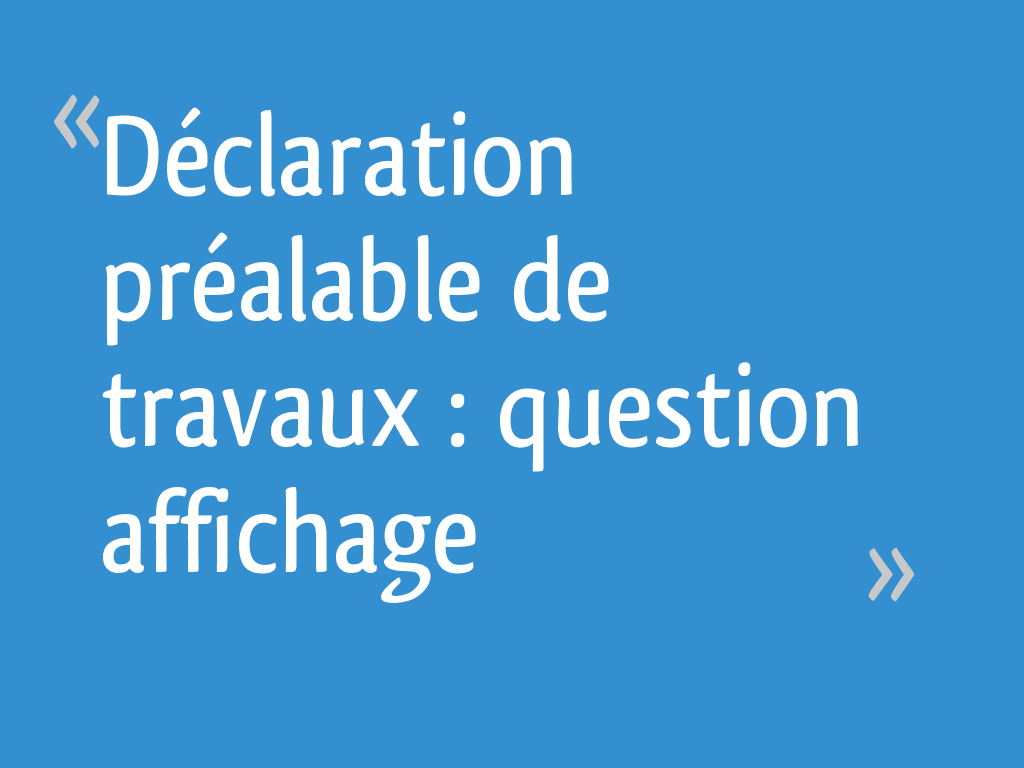 À quoi sert l'affichage obligatoire ? La déclaration préalable désigne une formalité administrative réalisée avant l'accomplissement de travaux et permettant à la mairie d'une commune de vérifier que. La 1ère étape consiste à durant la période des travaux, vous devrez mettre en place sur votre terrain un panneau d'affichage. D'une taille d'au moins 80cm de côté et. Avis au lecteur sur l'accessibilité : La déclaration préalable de travaux est adressée par courrier recommandé avec demande d'avis de réception ou déposée à la mairie, par le propriétaire du terrain. Elle est notamment obligatoire lorsque les travaux modifient l'aspect extérieur du. Quel formulaire remplir pour ma déclaration préalable de travaux ? Pour le public, elle prend forme grâce à l'affichage du per. Décision et délai de réponse. La catégorie des déclarations préalables occupe une place particulière au sein des autorisations d'urbanisme. A la différence de la catégorie des permis, l'administration dispose davantage d'un droit de regard et d'opposition sur des travaux ou aménagements de faible importance envisagés par un. Les entreprises ont une obligation d'information à l'égard de leurs salariés.